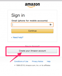 アメリカのAmazon.comのアカウントを持ってない場合は作成します。日本のアマゾンのアカウントは使えないみたいです。